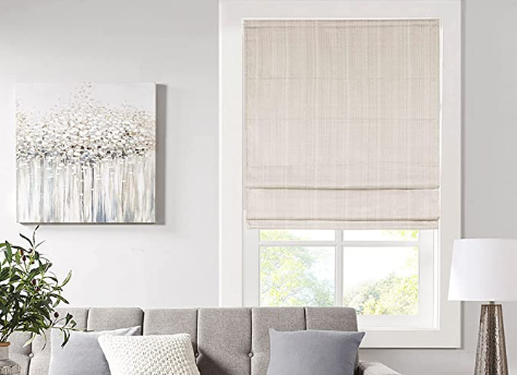Dit Amazone ivoor raam vouwgordijn heeft een basisstof met een geweven structuur die zorgt voor een natuurlijke look en feel, het bevat geen schadelijke stoffen of chemicaliën om comfort en welzijn van hoge kwaliteit te garanderen. biedt een eenvoudige en handige update voor uw interieur.