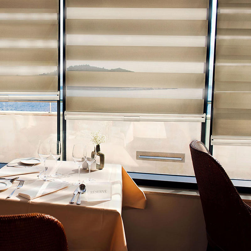 Privacycontrole is vooral belangrijk voor kamers zoals slaapkamers en badkamers die volledige privacy vereisen.Met snoerloze zebra-jaloezieën kunnen gebruikers volledige privacy garanderen terwijl er toch wat natuurlijk licht de kamer binnenkomt.