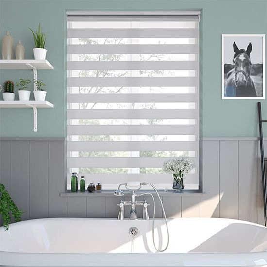 Voordat we ingaan op de manieren waarop zebragordijnen werken in een badkameromgeving, gaan we eerst het product zelf eens nader bekijken.Zebra-jaloezieën, ook wel overgangskleuren genoemd, bestaan uit twee lagen stof met afwisselend horizontale strepen.Deze strepen kunnen worden aangepast om elkaar te overlappen of te scheiden, waardoor het gewenste niveau van licht en privacy in elke kamer wordt geboden.Sommige zebrajaloezieën hebben zelfs een gemotoriseerde optie, waardoor ze net zo eenvoudig kunnen worden geopend en gesloten als met een druk op de knop.