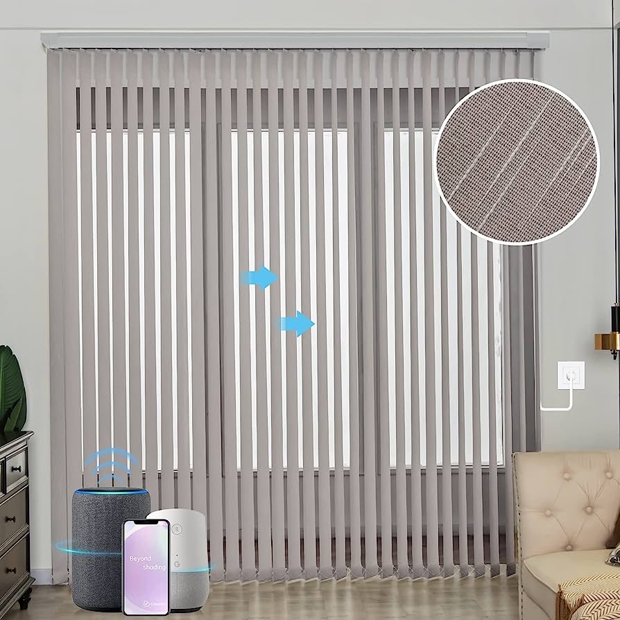 Gemotoriseerde verticale jaloezieën uitgerust met smart home-technologie bieden een nog geavanceerder niveau van comfort.Deze jaloezieën kunnen worden bediend via uw smartphone of worden geïntegreerd met uw domoticasysteem, zodat u ze kunt bedienen met spraakopdrachten via Google Assistant of Alexa.
